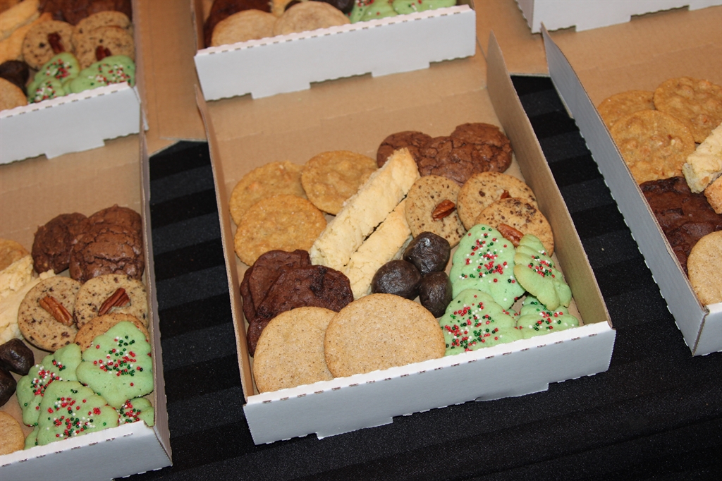 Inside the box, I arrange an assortment of cookies (trying to separate like colors). Here is a quick shot of what the teachers got yesterday. I still have not hit the point in my cookie baking this year where I am decorating the cookies, so they are slightly less colorful than some years.