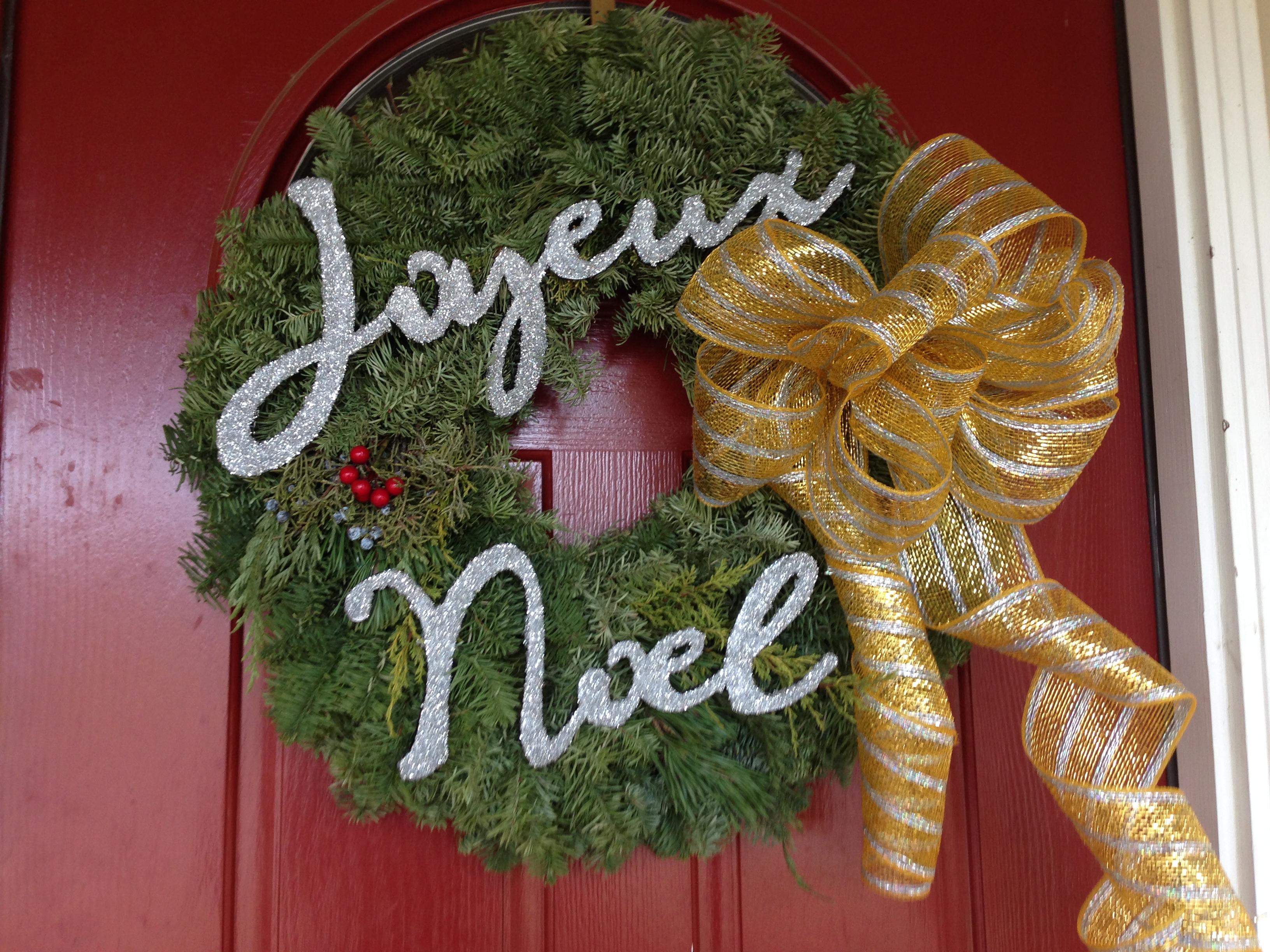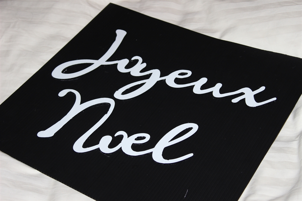 It was at that point I realized I needed to go with French Christmas theme and coordinate it with the wreaths on my door. I am pretty sure that involves needing a glittery “Joyeux Noel”. You can find nearly every other glittery holiday word/phrase imaginable, but not that one. Time to take, “Create that which you wish existed” to heart and make my own.